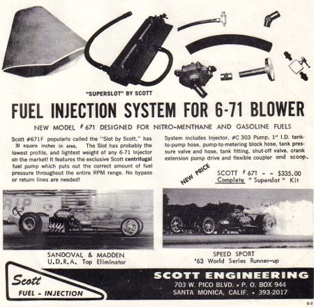 ![]() The 'injector hat' system used in Mad Max 2 was a fabricated one based on the Scott air-intake design used in the first film. This 1960s advert shows to good effect the general shape of the air scoop. |
