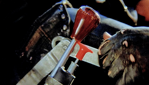 ![]() The supercharger base unit was mounted higher on the engine in Mad Max 2 with the prominent drive pulley wheel sitting fully above the bonnet cut-out lip. |