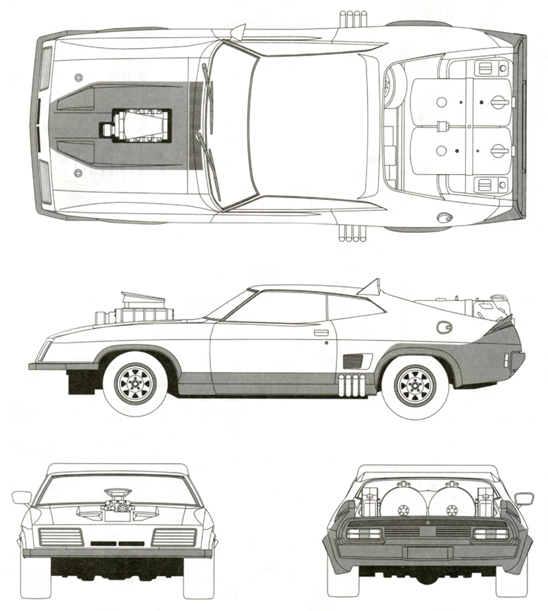 official still materials are solely used for illustrative purposes. Adrian Bennett - Mad Max 2 Museum, Silverton, Australia. Cameron Manewell for Falcon technicals. Street Machine Magazine - Oct/Nov 1985. Australian Muscle Car Magazine - May/Jun 2011 / Issue #55. Australian Muscle Car Magazine Special Edition: The Mad Max Cars / 2024. Peter Barton - www.madmaxmovies.com. www.madmaxcars.com for technical help. Robert Sandler for Interceptor detail photos. David Larter for photos. |