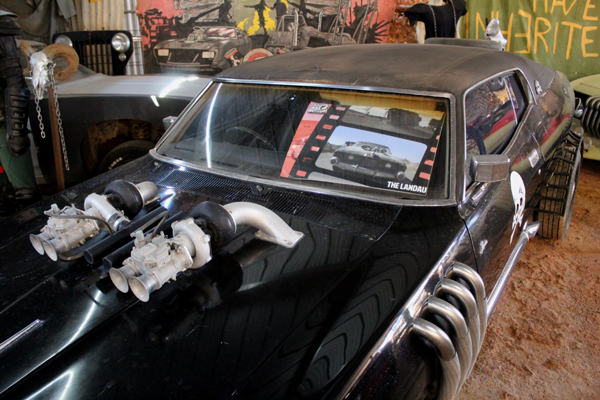 ![]() A replica of the Landau "Skull Car" with fake bonnet-mounted twin Weber Carburettors as displayed at Adrian Bennett's Mad Max 2 Museum. Photo: Simon Beck. |