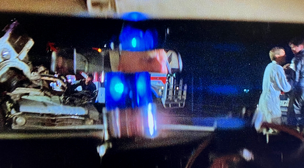 ![]() The wreck of a Ford XA Falcon can be briefly seen crushed against a truck in the opening shot of the night accident scene. |