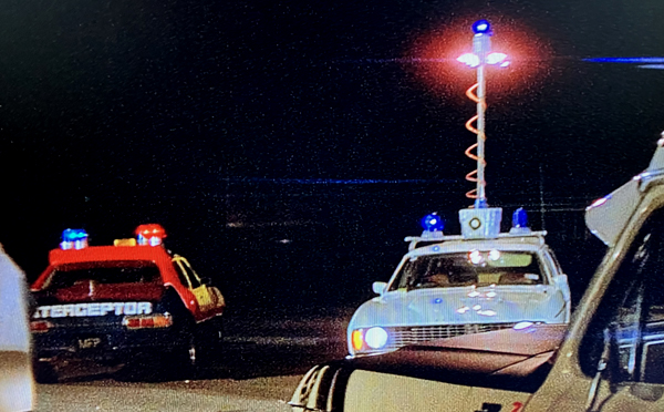 ![]() An actual XC Falcon station wagon police car from the Accident Appreciation Squad was provided to the production and is seen here with the roof mast extended which gives the police rapid lighting at serious accident scenes and warns other approaching motorists of potential danger ahead. |