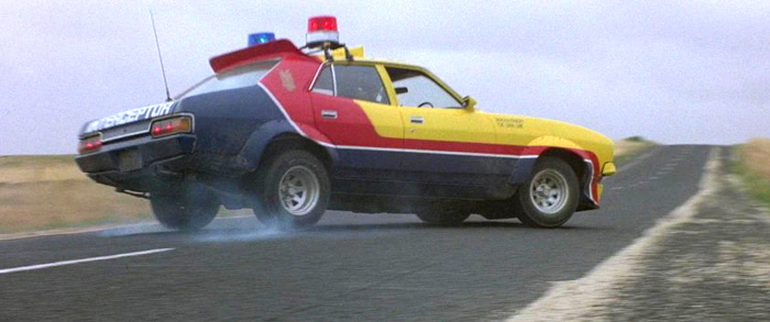 brief screen roles in a fatal night crash scene. Firstly a white Ford XA Falcon sedan was acquired as a wreck and is depicted in the movie story as having been driven by a "couple of crazies" who hit a truck. One of the occupants is shown bloodied and half conscious on the XA's passenger window sill. The second is a genuine Victorian State Police 1977 Ford XC Falcon 500 station wagon which was provided to the filmmakers by the police Accident Appreciation Squad for the one night of filming on Melbourne's yet to open West Gate Freeway Bridge. |