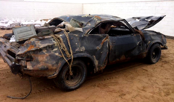 The post crash Interceptor chassis was already a wreck before filming began. Photo Source: Facebook - Mad Max Garage Inc. |