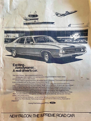 ![]() "Born on the Wind..." was a Ford marketing campaign for the new XA Falcon range in 1972 (above left) with the Melbourne Herald newspaper running a full page advert promoting the new car on 29 March, 1972 as "A real driver's car" and "The supreme road car" (above right). |