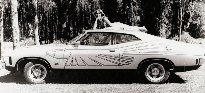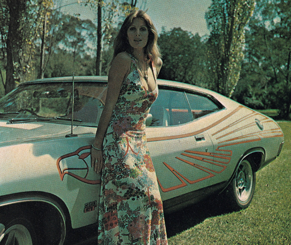![]() The show car XA was Aluminium Silver with orange applied decals. The model seen in the photo shoot is Jill Goodall who famously had a small role as a Bond girl in The Spy Who Loved Me (1977). |